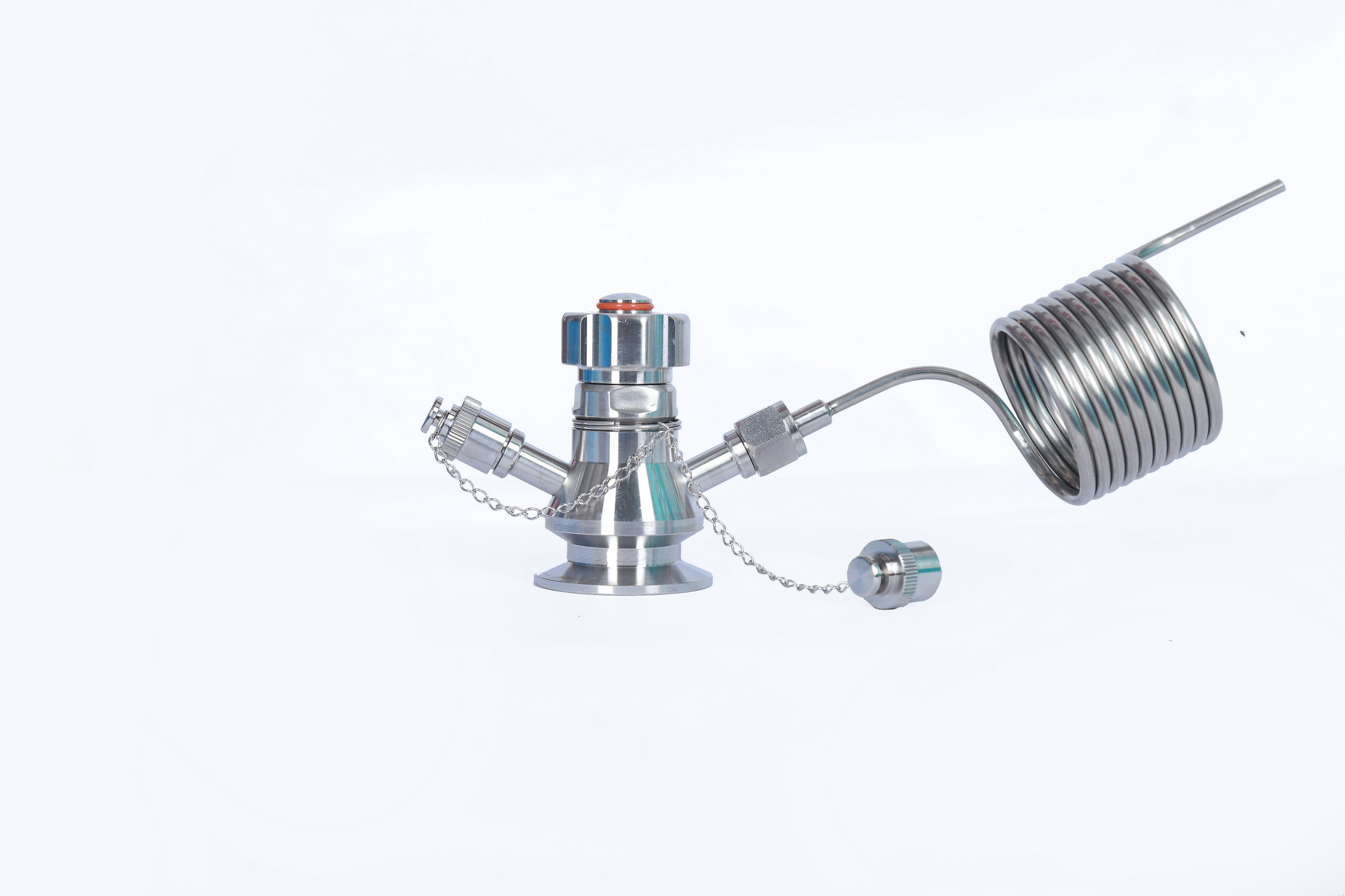 消沫器具備有特種功能,鏈接口掛在無菌取樣閥螺紋絲出口上,(設(shè)計(jì)為螺旋式)。管內(nèi)徑光潔度光滑,取樣閥打開流向到消沫器盤管上,經(jīng)過盤管螺旋走向,減少啤酒氣體壓力,出酒很少有沫,保證取樣時(shí)的酒液口感度 同時(shí)也可以滿足于各種生產(chǎn)工藝需求,也可以用來打酒設(shè)備。該啤酒消沫器不銹鋼SUS304材質(zhì),衛(wèi)生設(shè)計(jì),滿足于啤酒業(yè)等各種工藝領(lǐng)域。