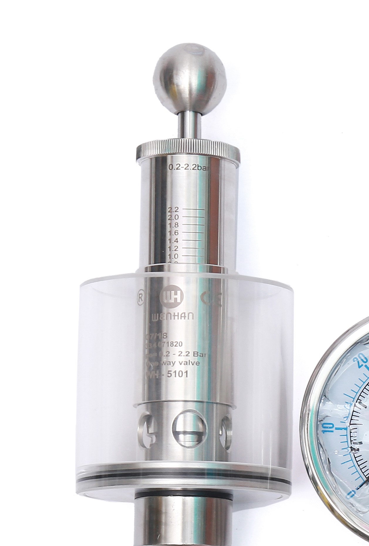 調節單向排氣閥保護容器壓力過高防爆作用,當壓力高于設定壓力(標準1BAR)時可以排氣,反之關閉,調節桿標上壓力刻度,所需壓力按刻度上調整,該閥門使用方便,刻度準確,玻璃罩加水能看到發酵效果,減少染菌。同時也可以滿足于各種生產工藝需求,適用于各種食品加工,啤酒,飲料以及制藥等各種工業領域。