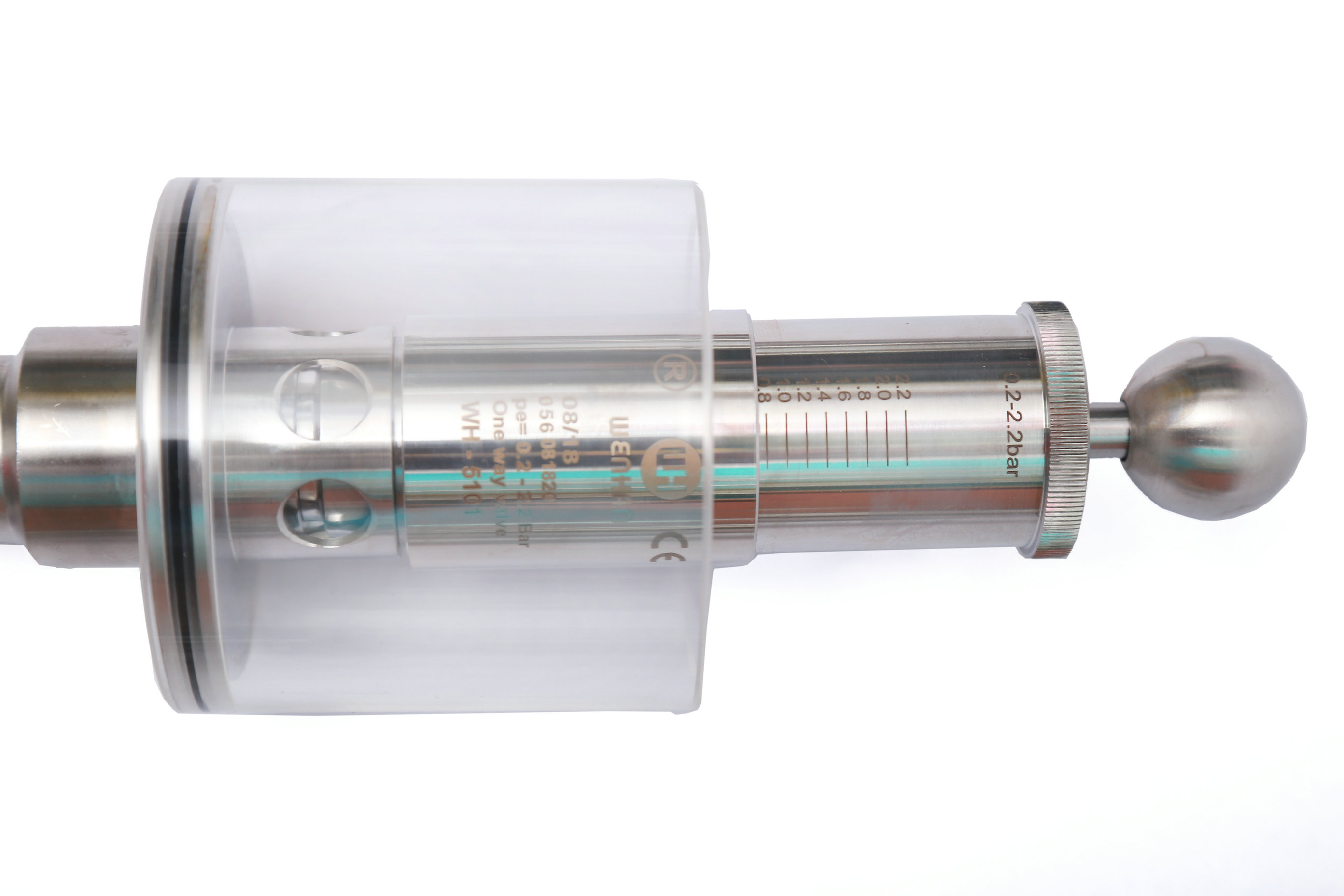 Wh-5101E 鏈接;快裝,卡箍。管徑;彎頭Φ32*1.5 . 內部設計壓力;由彈簧控制. 工作介質;氣體。手動式,旋鈕調節刻度壓力。