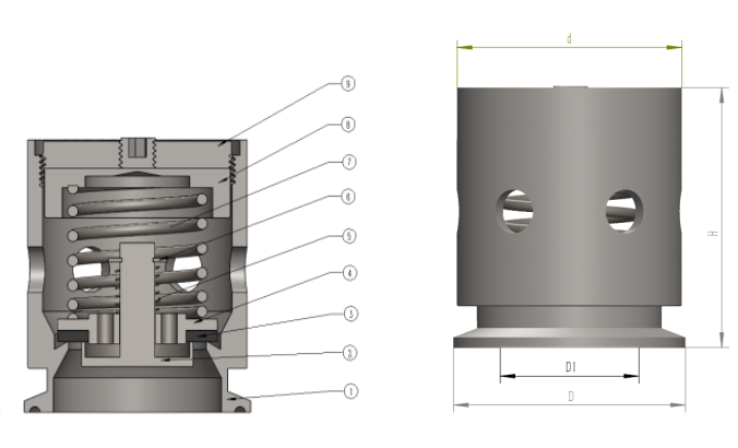 呼吸閥具備兩種功能,當壓力高于設(shè)定壓力(標準1BAR)時可以排氣,反之關(guān)閉,內(nèi)部設(shè)計調(diào)節(jié)壓力功能,外設(shè)計平型蓋加螺絲微調(diào)節(jié)功能。當管路系統(tǒng)中產(chǎn)生真空(標準-0.2BAR)時閥門自動打開,外界空氣進入容器內(nèi),防止容器吸扁。保證設(shè)備和相關(guān)儀表的保護作用,同時也可以滿足于各種生產(chǎn)工藝需求,該閥門不銹鋼材質(zhì),衛(wèi)生設(shè)計,滿足于各種食品加工,啤酒,飲料以及制藥等各種工業(yè)領(lǐng)域。